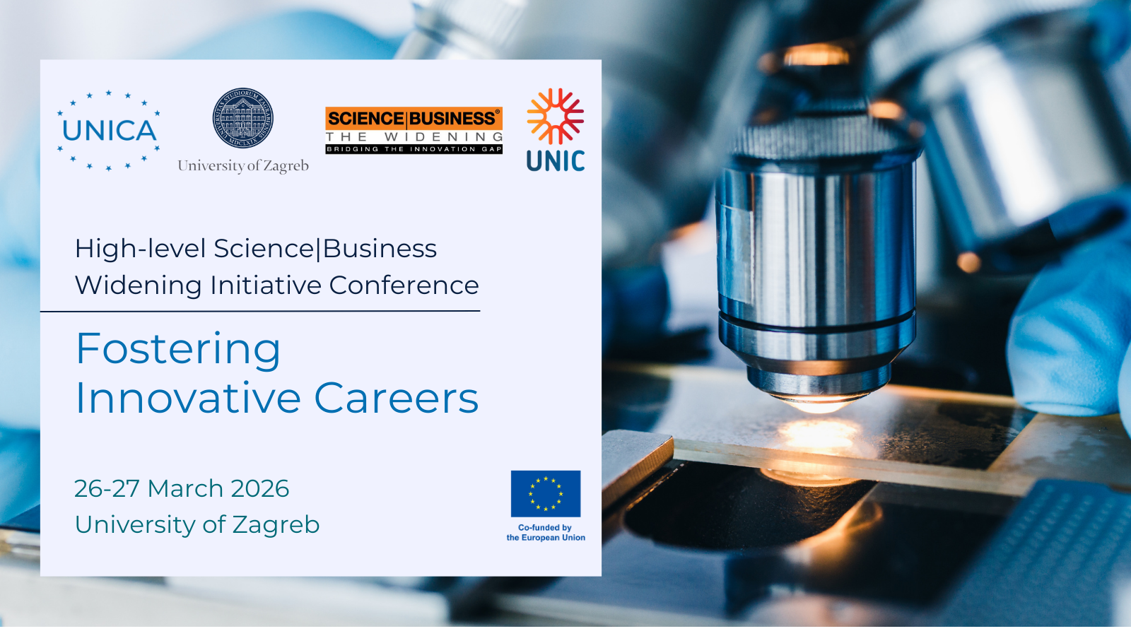 The high-level Science|Business Widening Initiative event: “Fostering Innovative Careers” – organized by UNICA, University of Zagreb, Science|Business Widening Initiative, and the UNIC European University – will be hosted by the University of Zagreb, 26-27 March 2026.