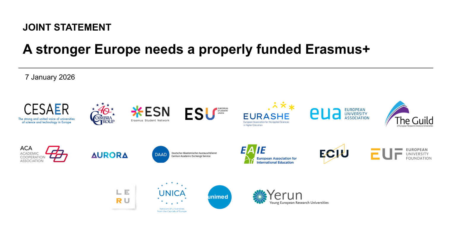 Together with sixteen other European higher education organisations, we have issued a joint statement where we call on EU policymakers to ensure that at least €60 billion are allocated to Erasmus+ in the ongoing negotiations for the next Multiannual Financial Framework for 2028-2034.